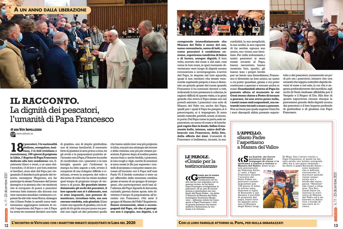 Le Storie·Vita di chiesa [IL RACCONTO] La dignità dei pescatori, l’umanità di Papa Francesco 18 i pescatori, 3 le nazionalità (italiana, senegalese, tunisina), 2 le fedi (cristiana e musulmana), 108 i giorni di prigionia in Libia, Dicembre 28, 2021