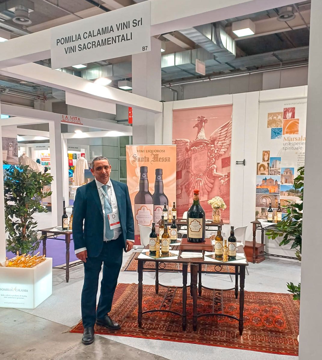 Il vino da messa che viene prodotto a Marsala è stato protagonista a “Devotio”, l’esposizione internazionale di prodotti e servizi per il mondo religioso, che si è svolta a Bologna Fiere. I produttori marsalesi – tra i più di duecento espositori da tutto il mondo – hanno fatto parte del meglio della produzione italiana e internazionale di articoli religiosi, arredi e paramenti sacri, statue, stampa 3D, campane, incensi e candele, vetrate e mosaici, arredo chiesa, tecnologia (illuminazione, riscaldamento, amplificazione, sistemi di donazioni) e servizi vari. Tra gli espositori marsalesi le aziende: Intorcia, Martinez, Vinci, Pomilia e Calamia, Gandolfo. A Bologna ha fatto visita anche il delegato vescovile per i vini della santa messa, don Daniele Donato. Per volumi di vino della santa messa venduto, Marsala rappresenta il primo polo di produzione in Italia: il vino da messa da Marsala raggiunge il Vaticano, attraversa gli oceani, il Mediterraneo e arriva anche nelle piccole chiese cattoliche in Africa. Il rigido controllo della lavorazione e della qualità del prodotto è affidato al delegato vescovile per i vini della santa messa.