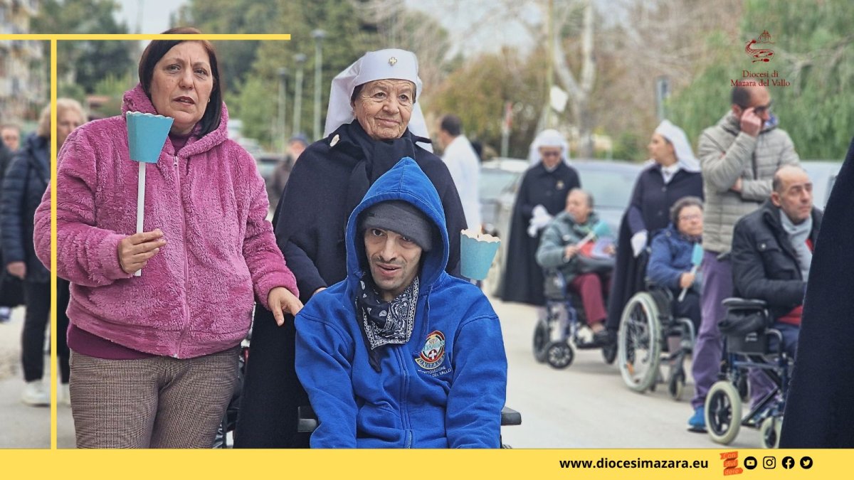 «L’amore di Dio riversato nei nostri cuori, per questo la speranza non delude. Lo Spirito santo rende possibile questo sperare dandoci la testimonianza interiore che siamo figli di Dio, suoi eletti. La speranza non delude e non illude». È questo un passaggio dell’omelia del Vescovo monsignor Angelo Giurdanella nella santa messa di ieri presso la parrocchia Maria Ss. della Confusione di Salemi per la Giornata mondiale del malato. L’iniziativa diocesana è iniziata con un momento di riflessione tenutosi nell’atrio dell’ospedale “Vittorio Emanuele III” di Salemi, col saluto del Vescovo, del direttore dell’Ufficio diocesano di Pastorale della salute don Antonino Favata e di don Vito Saladino che ha letto il Messaggio del Papa per la Giornata e ha tenuto una riflessione. A seguire, in processione, più di 300 persone tra fedeli, soci Unitalsi, presbiteri, il sindaco Vito Scalisi, rappresentanti di associazioni che si occupano di diversamente abili, hanno sfilato verso la parrocchia dove è stata celebrata la santa messa. Il Vescovo si è rivolto ai volontari Unitalsi ma anche ai genitori dei diversamente abili definendoli «seminatori di speranza». Al termine della celebrazione il Vescovo ha annunciato che la Giornata mondiale del malato 2026, a livello diocesano, sarà celebrata a Mazara del Vallo.
